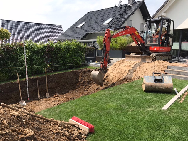 Auch auf kleinstem Raum ermöglichen wir die passgenaue Installation von Außenpools durch ein fachgerechtes Ausheben des Erdreiches. So geben wir besonders Acht auf die umliegende Vegetation, Terassenböden und die harmonische Integration in Ihre Gartenlandschaft.